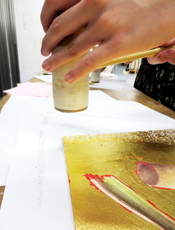 箔はとても繊細な画材。学生たちも緊張感たっぷり?に集中して作業をしていました。