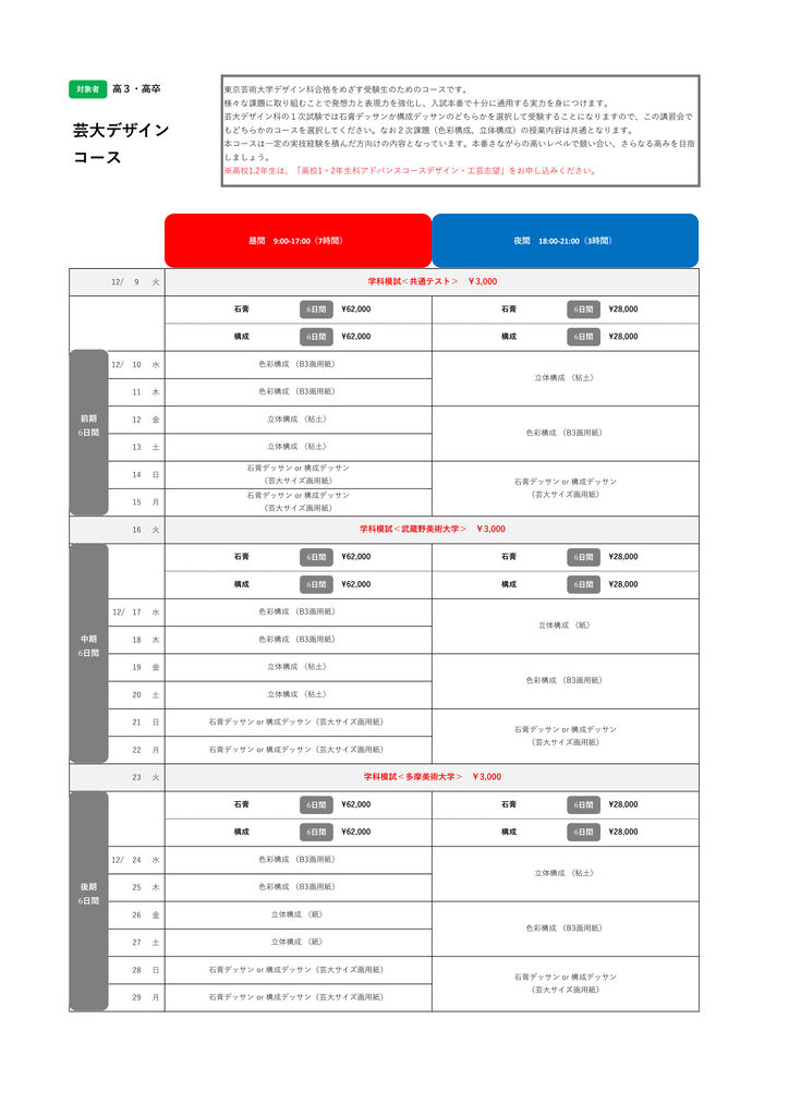 ・受講対象は日本の芸大・美大を受験する方です。海外の大学、3年次編入、帰国生入試には対応していません。
