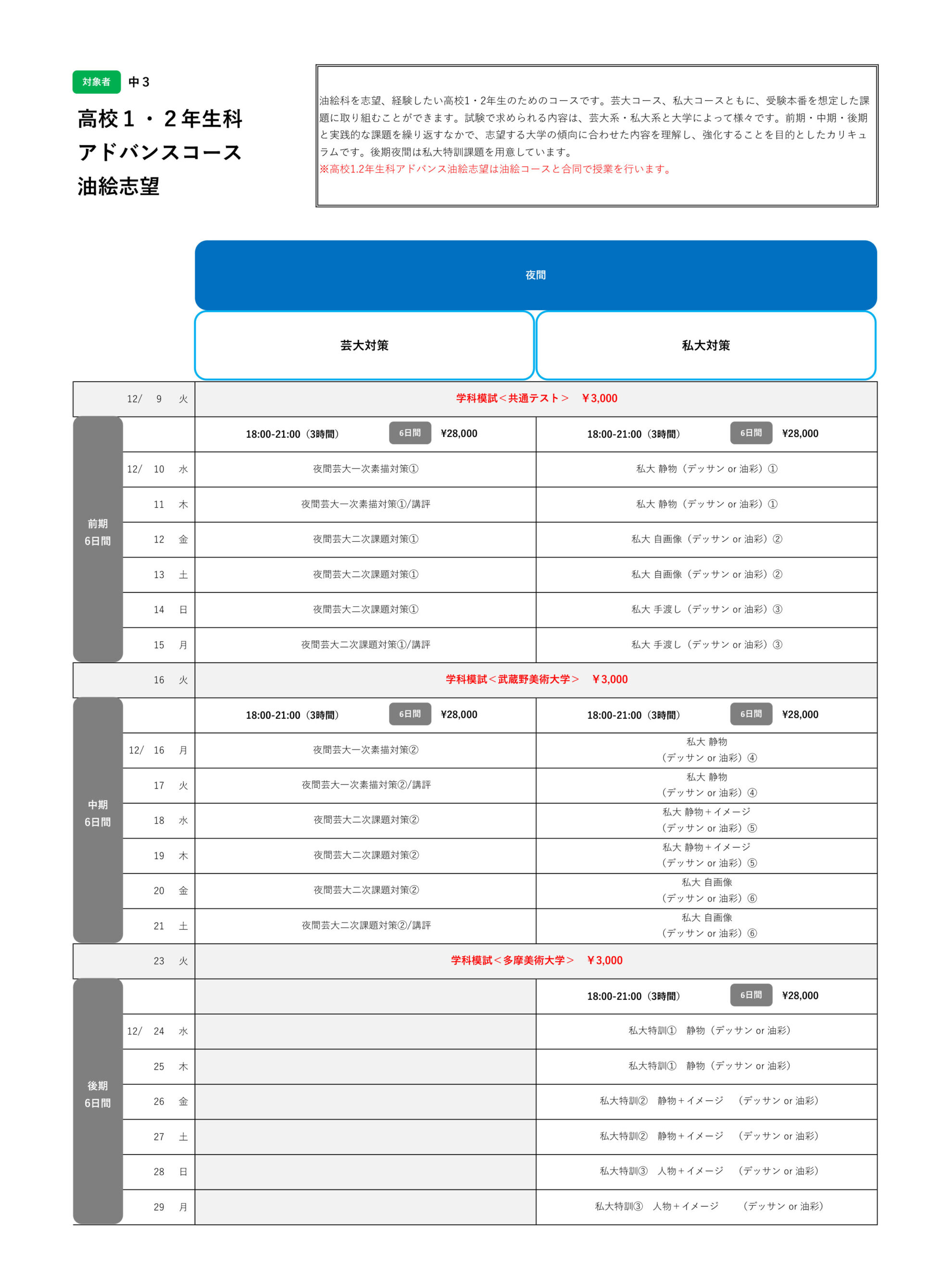 ▶ 冬期講習 高校1・2年生科 アドバンスコース 油絵志望【PDF】