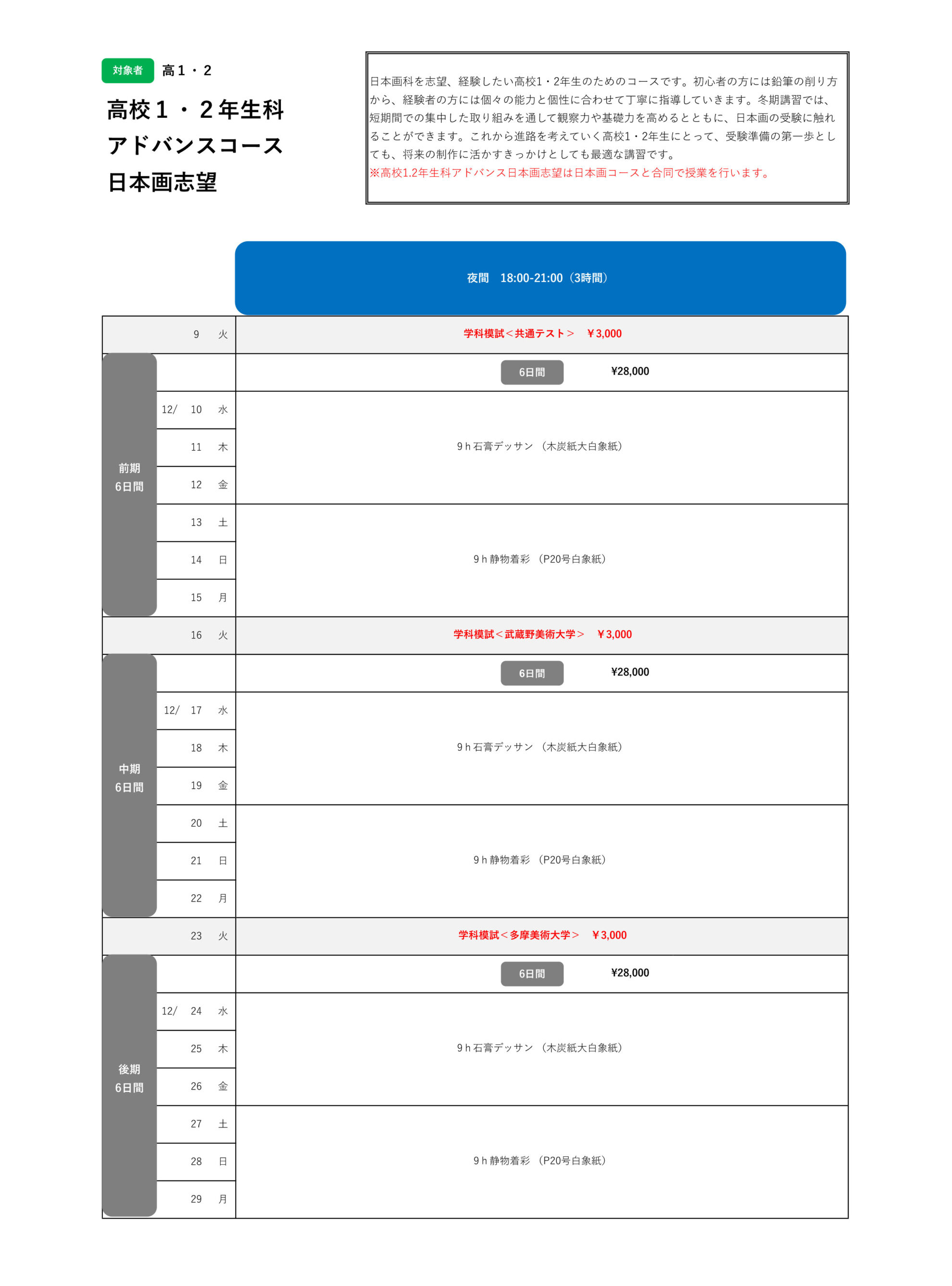 ▶ 冬期講習 高校1・2年生科 アドバンスコース 日本画志望【PDF】