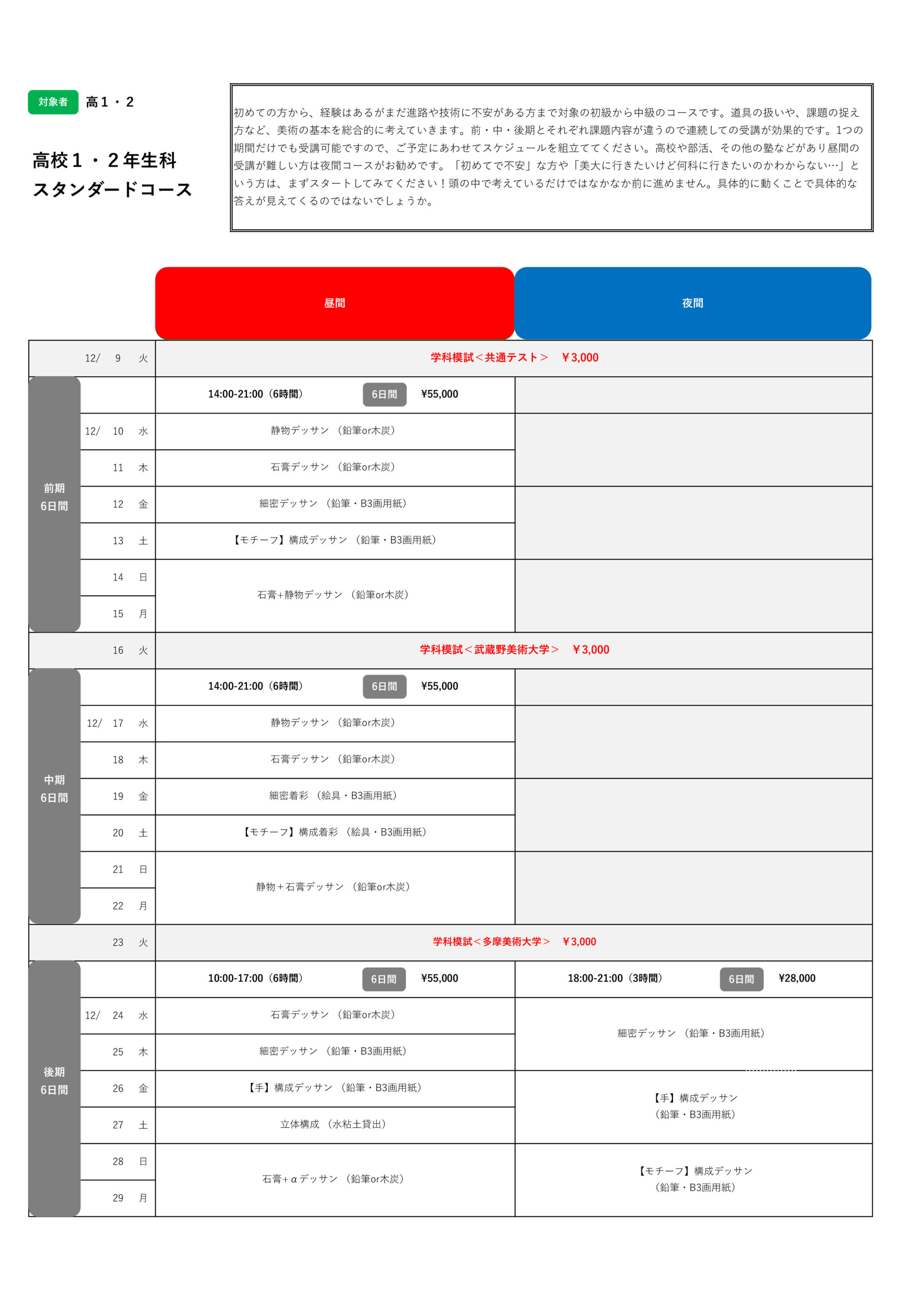 ・受講対象は日本の芸大・美大を受験する方です。海外の大学、3年次編入、帰国生入試には対応していません。