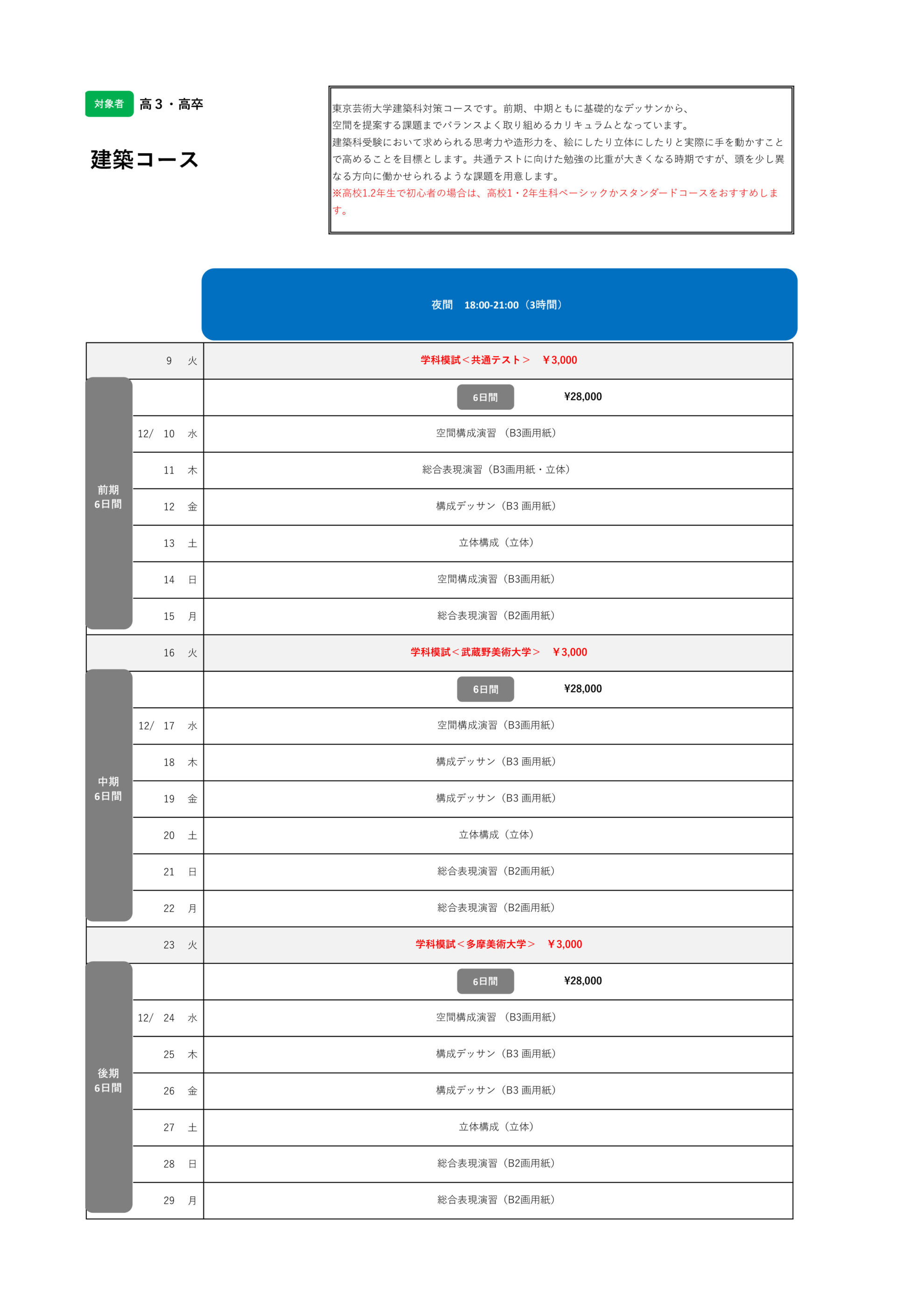 ・受講対象は日本の芸大・美大を受験する方です。海外の大学、3年次編入、帰国生入試には対応していません。