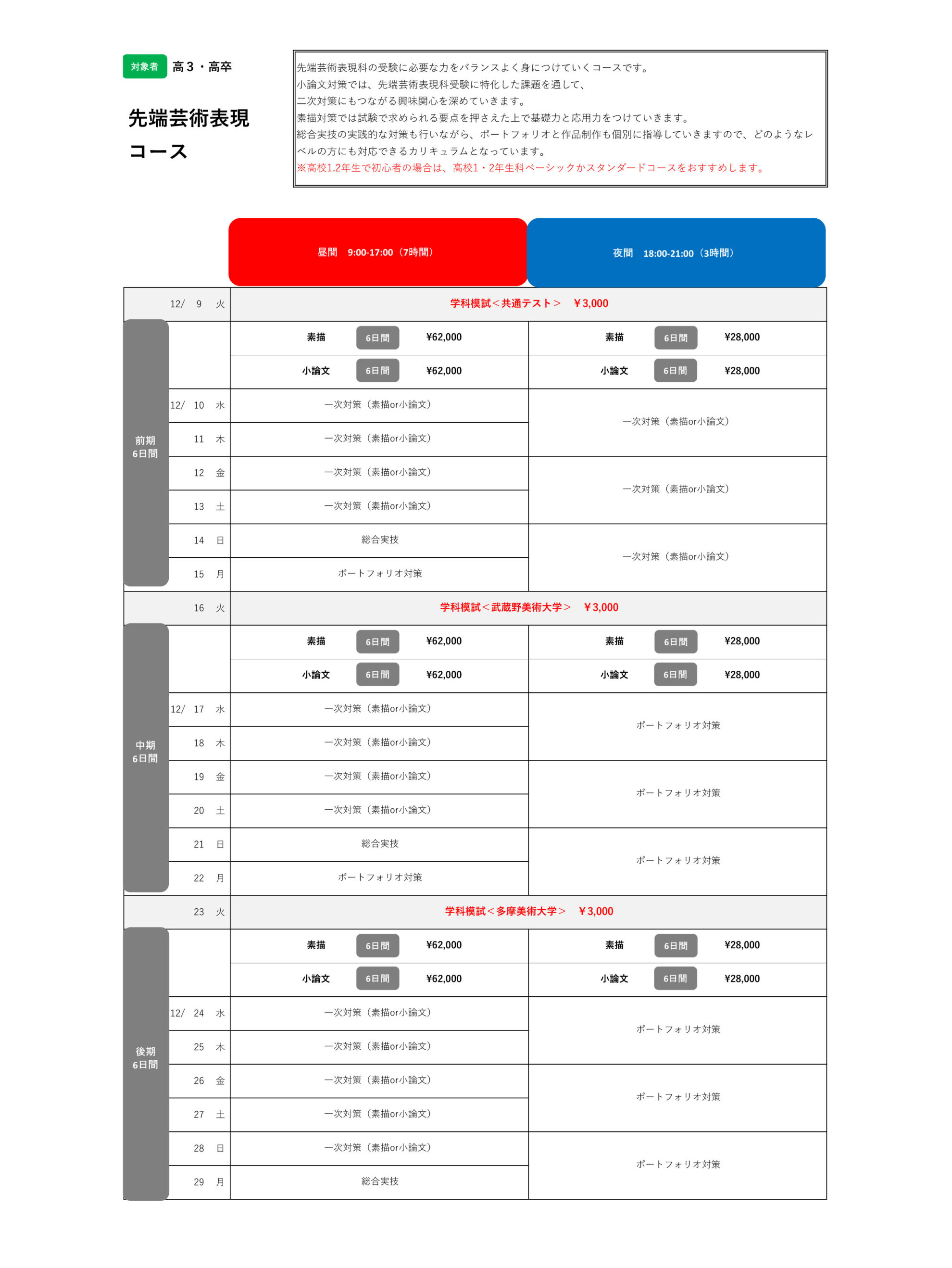 ・受講対象は日本の芸大・美大を受験する方です。海外の大学、3年次編入、帰国生入試には対応していません。