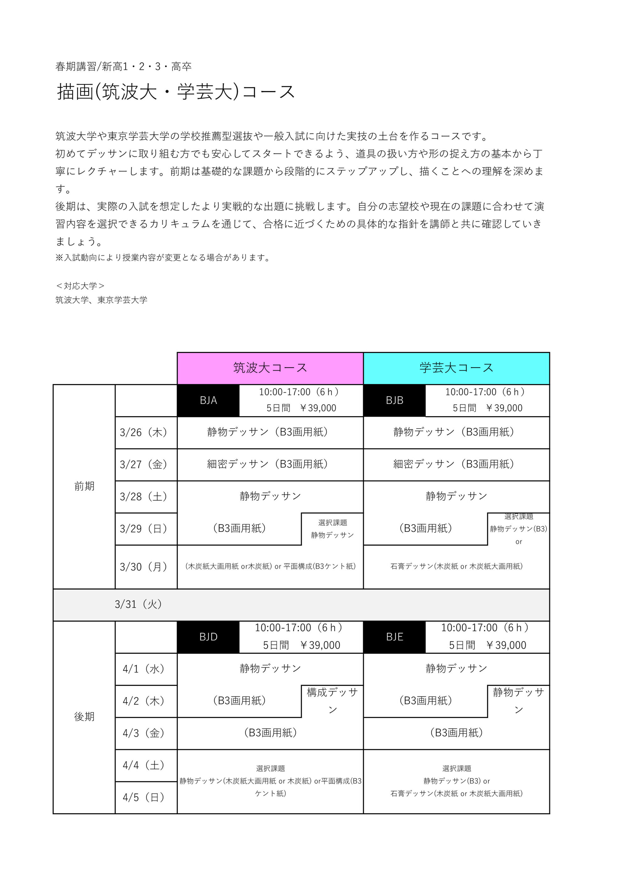 ・受講対象は日本の芸大・美大を受験する方です。海外の大学、3年次編入、帰国生入試には対応していません。