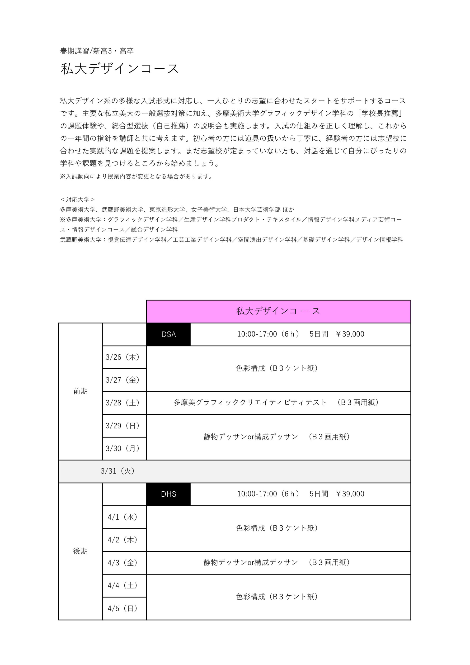 私大デザインコース[26’春期]