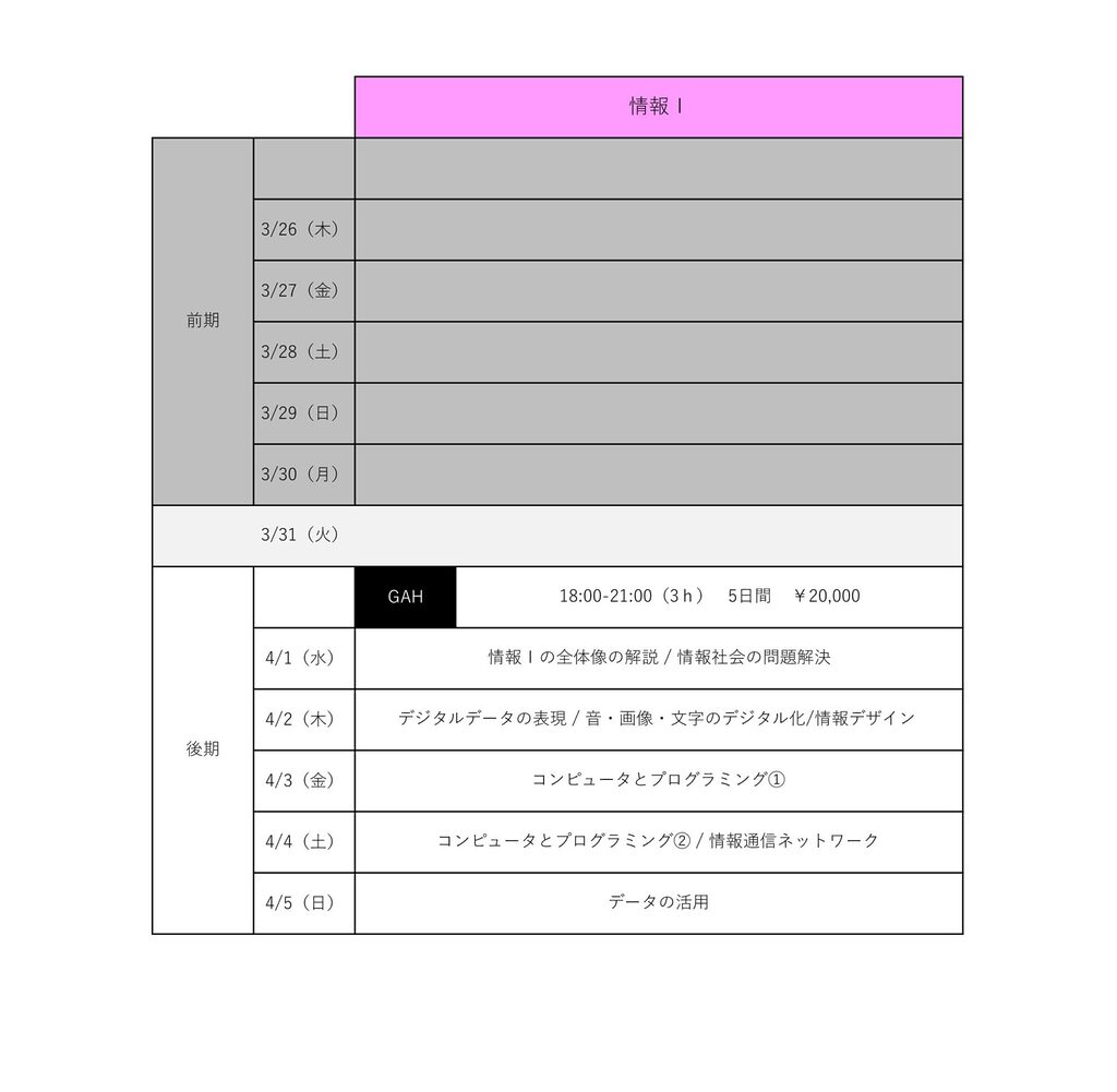 ※情報Ⅰは後期(4/1(水)~4/5(日))のみの開講です。