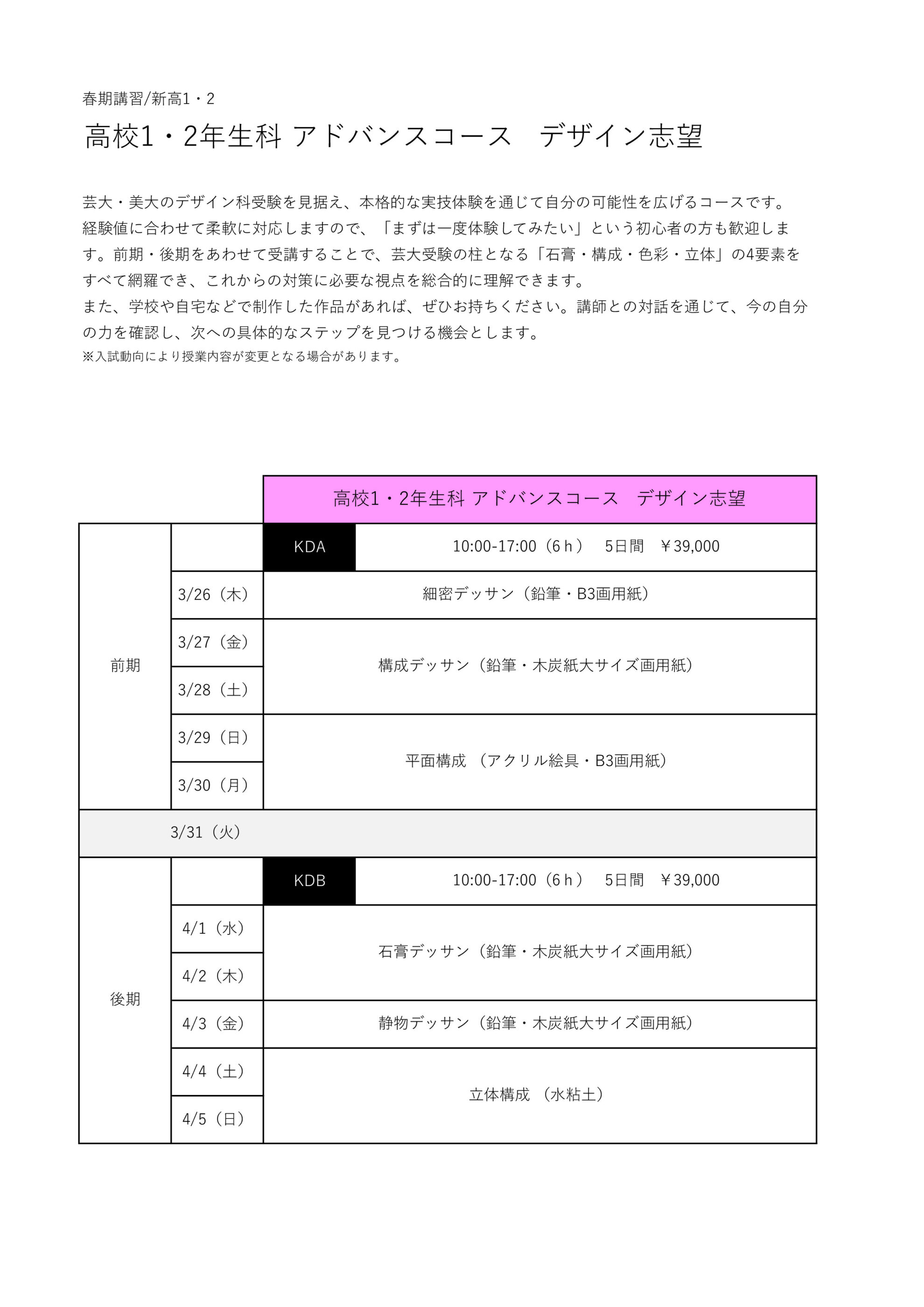 ▶ 春期講習 高校1・2年生科アドバンスコース デザイン志望【PDF】