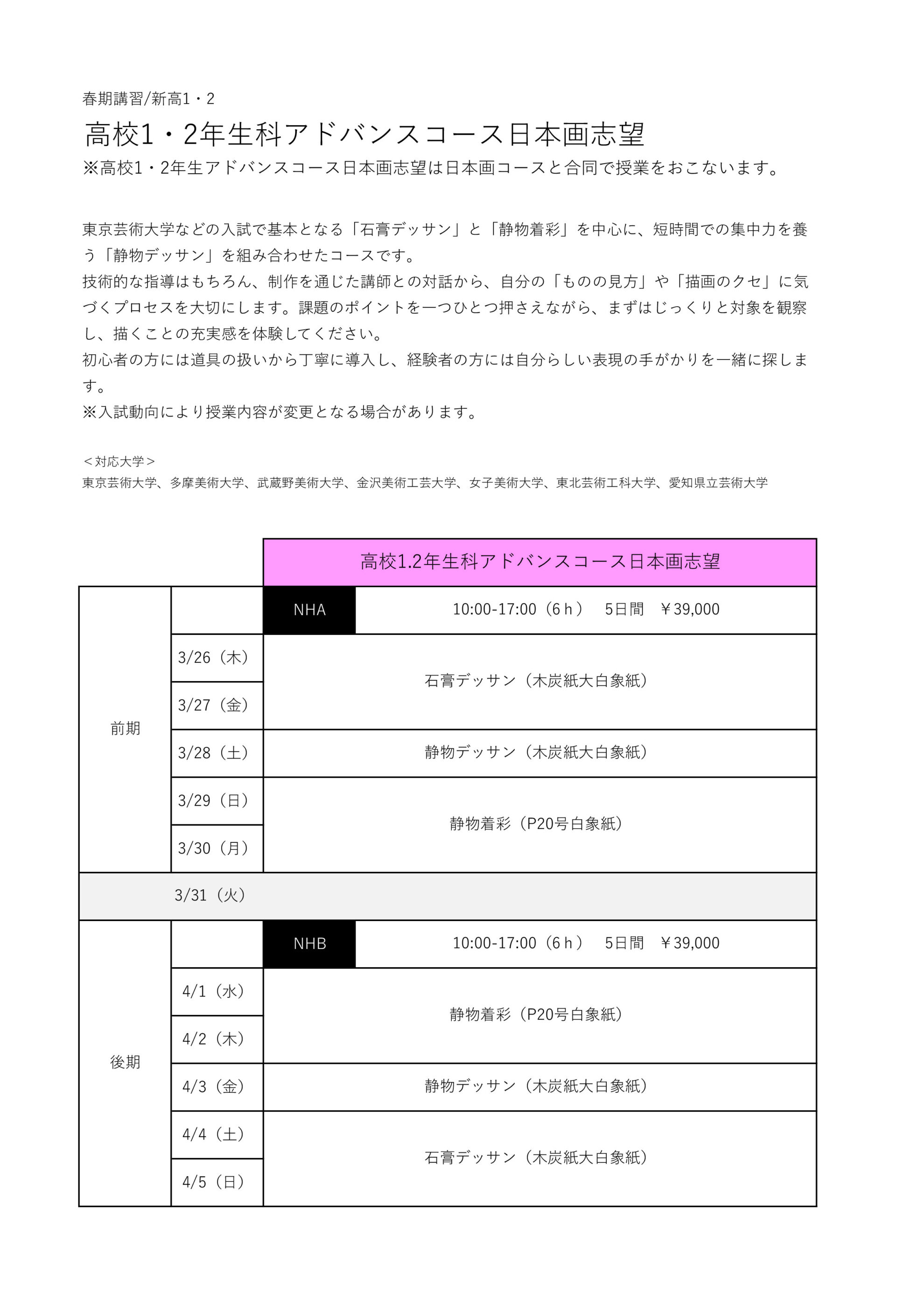 ▶ 春期講習 高校1・2年生科 アドバンスコース 日本画志望【PDF】