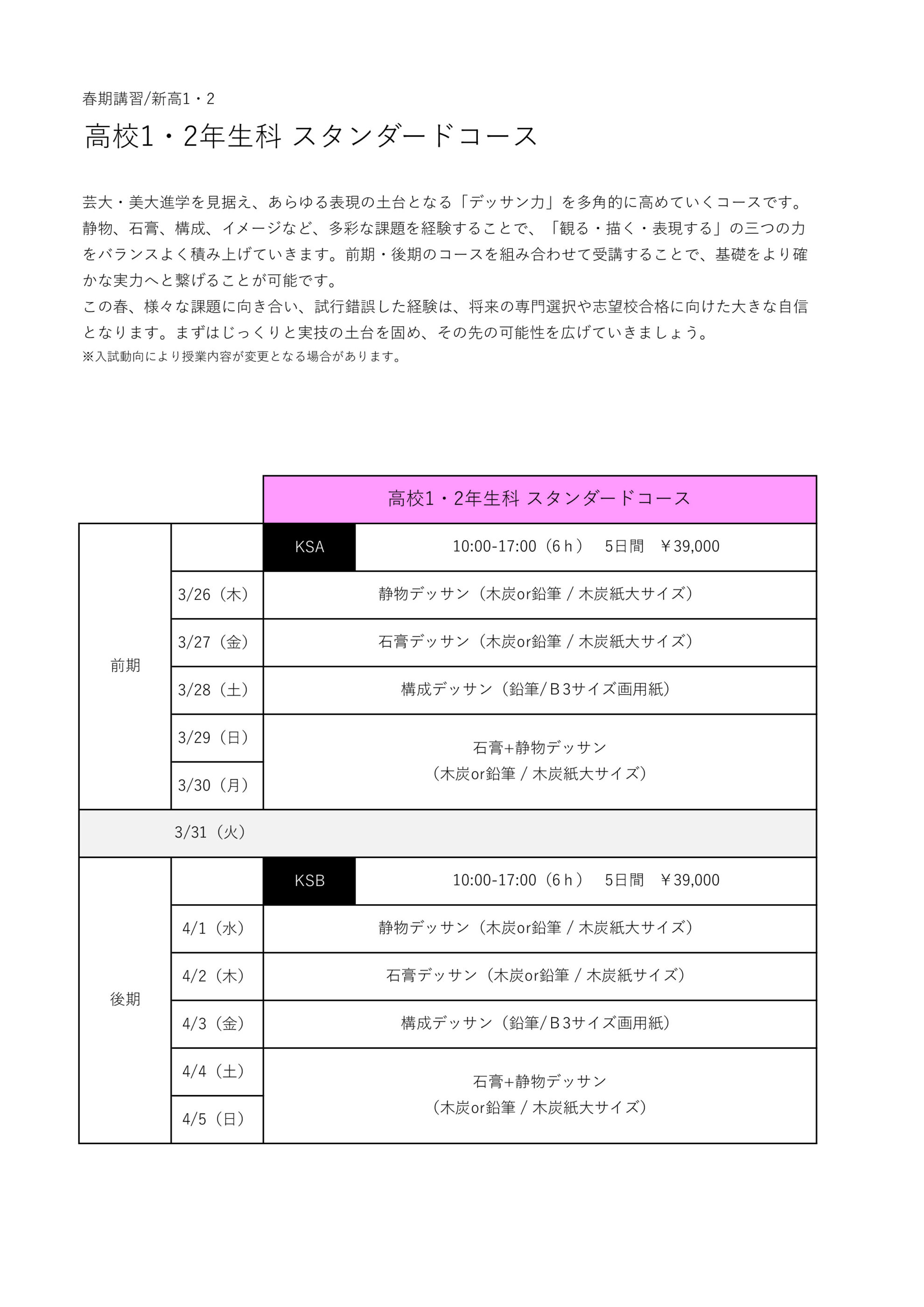 高校1・2年生科 スタンダードコース[26’春期]