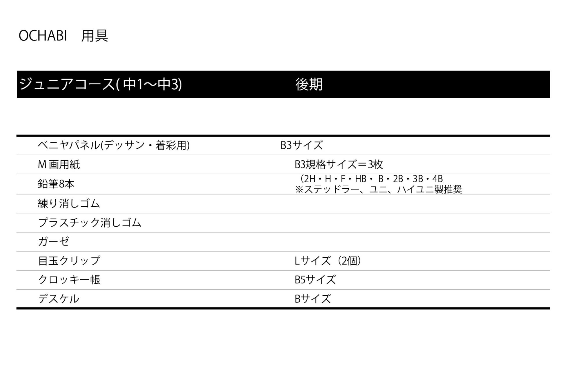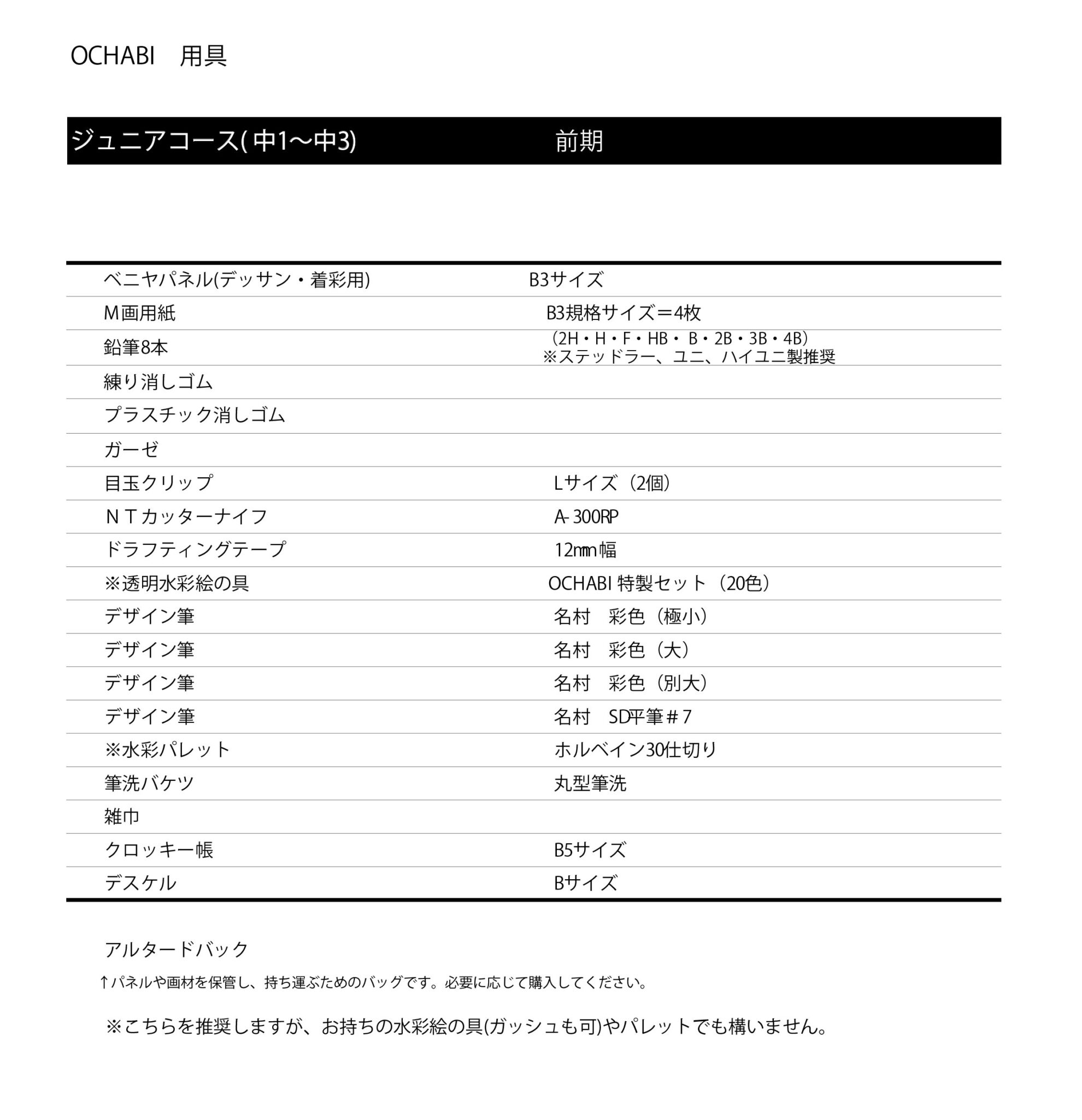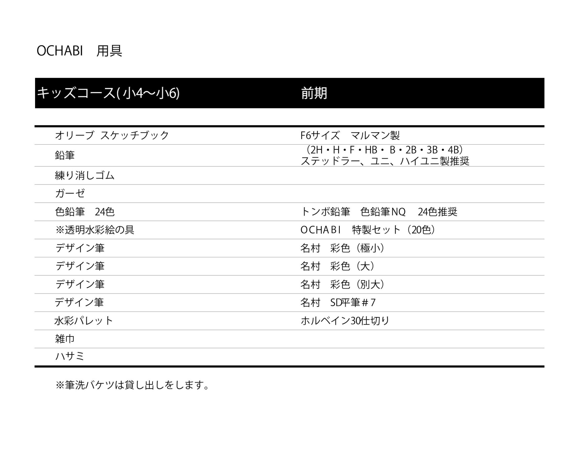 ※ご購入後の画材には、取り違えのおきないよう、全てに記名(フルネーム)をお願いいたします。
